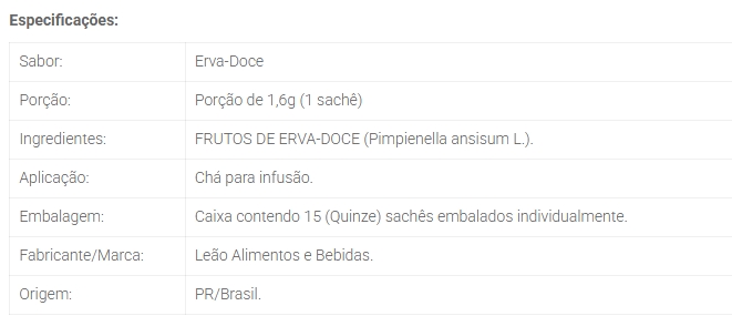 Instruções de uso do Chá Erva Doce C/10 Leão